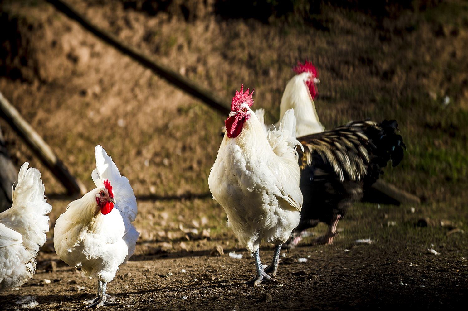 Hühner und Hähne im Hühnerpferch