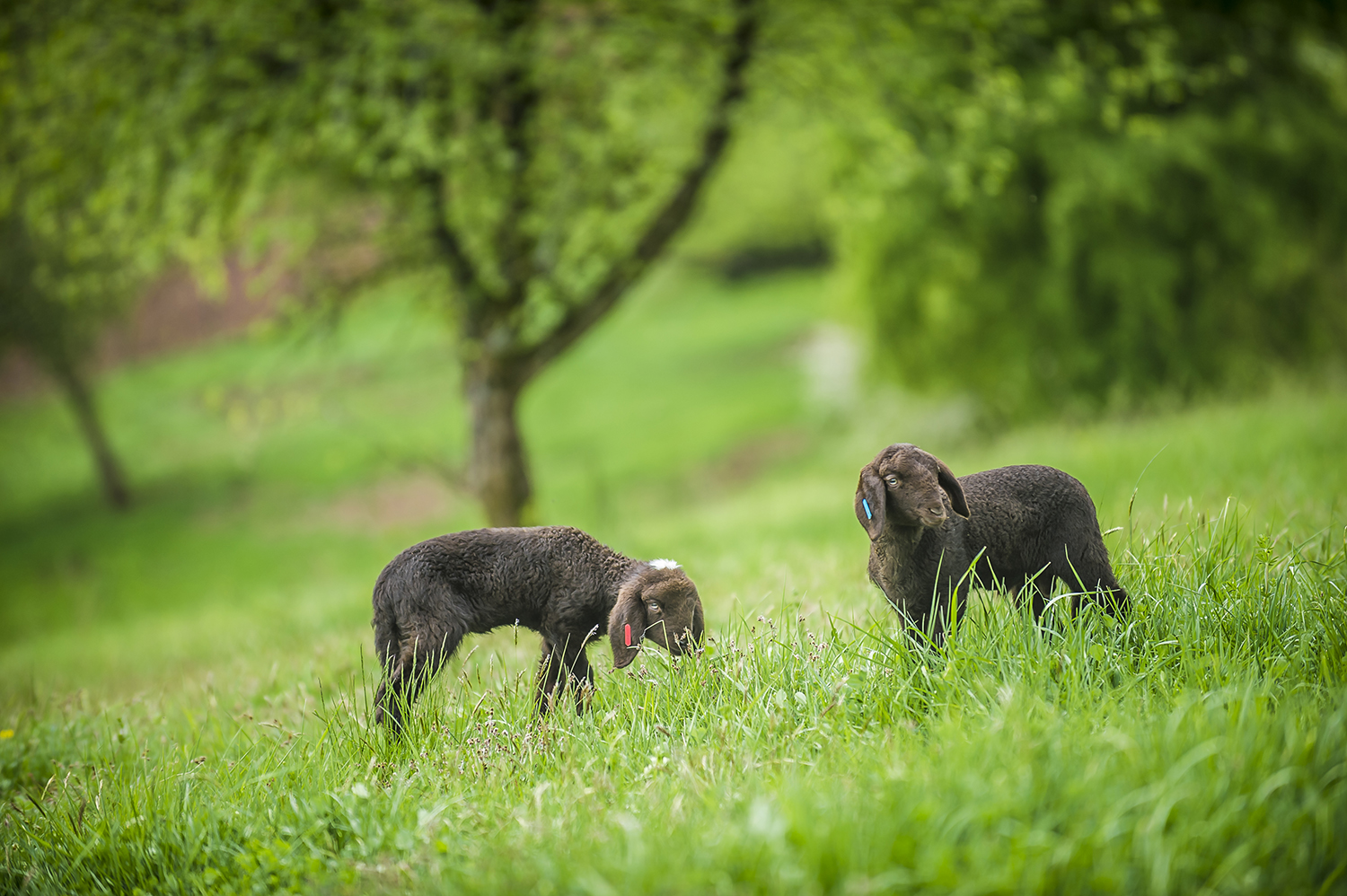 Lämmer der Braunen Bergschafe auf der Weide