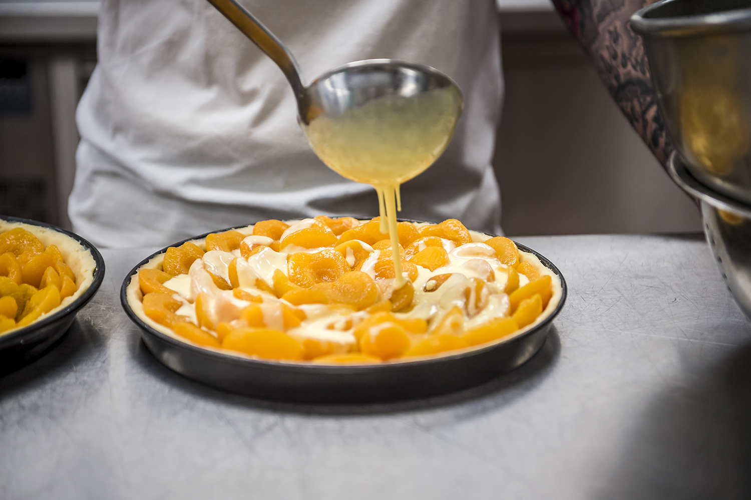 Aprikosen-Rahm-Kuchen in der Herstellung - Hofkonditorei