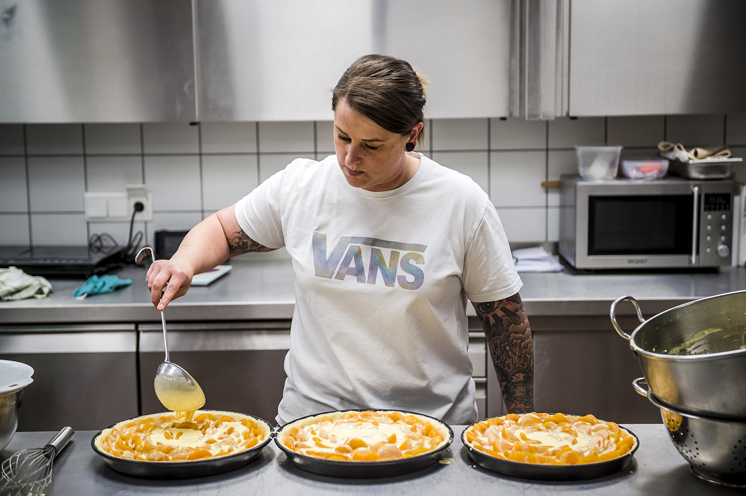 Aprikosen-Rahm-Kuchen in der Herstellung - Hofkonditorei